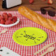 Plato De Papel Distancia social texto moderno de neón chartreuse