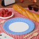 Plato De Papel Divertido Polka Dotado Luz Azul Rim Exterior Sobre