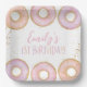 Cute Donut Birthday, placas de papel personalizadas. Nuestros donuts de color rosa, morado y melocotón dibujados a mano con un falso purpurina de oro y falsos copos de oro son super lindos y hacen de este el tema perfecto para sus pequeños Donut Grow Up el primer fiesta de cumpleaños.