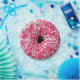 Se ve tan delicioso. Resista a la necesidad de tomar un bocado de este pastel fresco con espolvoreo blanco y rosado. Es sólo una imagen... aunque no engorda en esta representación. Si las gotas de hambre persisten, visite una tienda de donut o un puesto de concesión y obtenga una versión real de este postre azucarado. Mmmmm. Siéntase libre de personalizar añadiendo el texto que desee.