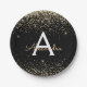 Plato De Papel Dorado Purpurina negro Sparkle Monograma Cumpleaño