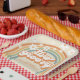 ¡Dos Groovy! Platos de 2º cumpleaños inspirados en la retro con fuentes y colores de estilo de los años 70, arcoiris y marrones en colores caídos. colores marrón, tostado y naranja.