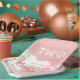 Estos platos de papel de cumpleaños de chicas rosas ofrecen un diseño bonito para los niños de 2 años de edad. El texto moderno dice "El nombre es DOS dulce" acentuado con una espoleta escarpada. El texto personalizado le permite personalizar con el nombre del niño.