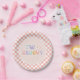 Impresión de dos groovy corrector Retro con platos de fiesta de cumpleaños de Daisies en rosa.