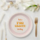 Platos de papel bonitos "dos groovy" para una celebración retro floral de segundo cumpleaños. Este diseño presenta un patrón de flores silvestres extravagantes, en una paleta de colores bohemias de marrón y terracota, beige, rosa y amarillo. Perfecto para los temas retro y boho fiesta en primavera y verano.