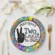 Dos leyendas para salir | El tema de la vieja escuela de Hip Hop retro es genial para un Fiesta de 2º cumpleaños. Tablero de ajedrez y bandeja colorida de pintura con silueta negra linda con dos dedos con monograma superior personalizado ©Miss Fiesta de diseño