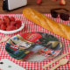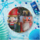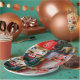 Un par de alegres petardos con un pequeño árbol navideño en el fondo, servilletas de papel y montaña rusa también disponibles