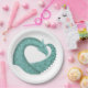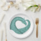 Plato De Papel Dragón de corazón verde sabio sobre blanco