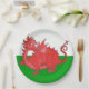 Una placa de papel, con un dragón rojo lindo en un fondo verde y blanco, similar a la bandera nacional Galés; de un ejemplo caprichoso pintado a mano de Judy Adamson. Este diseño se puede ajustar para caber cualquier placa de papel.