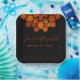 Plato de fiesta de papel para boda oscuro y dramático que presenta una flor aster de cobre metálico moderno con texto personalizable sobre fondo negro.