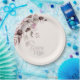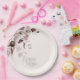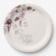 Delicados arreglos folclóricos con pequeños acentos florales en tonos suaves y oníricos de crema, taupe y rosa con salpicaduras de purpurina burdeos y diseños únicos hacen de este una interesante colección, especialmente para bodas de otoño. El plato de papel boda que se muestra aquí presenta un borde lateral de frondosa follaje y los nombres de la novia y del novio y la fecha del boda en una fuente decorativa. Vea el vínculo de colección en esta página para ver todos los elementos coincidentes de este hermoso diseño o busque ID817 para ver otras piezas y opciones de color para este conjunto.