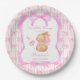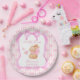 Plato De Papel Ducha de bebé con arco rosa conejo monogramada