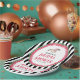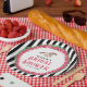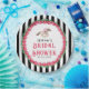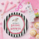 Este plato de fiesta de Derby tiene un caballo de carreras de acuarela con un jinete de rosa rodeado de una corona de rosas rojas con el dicho "Ducha de Boda". Hay un fondo a rayas negras y blancas. Puedes personalizar con un nombre y fecha.