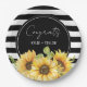 Digamos felicitaciones con estilo con platos fiestas de girasol y rayas perfectamente coordinados. Perfecto para una ducha de boda o cualquier celebración moderna y soleada. Echa un vistazo a la colección Sunflower & Black and White Stripes de EmmyINK para encontrar boda o ducha a juego, decoración, suministros fiestas y más!