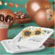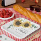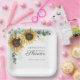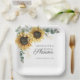 Plato de Papel para Ducha de Novia con Vegetación de Eucalipto y Girasoles. Con un hermoso ramo floral rústico y tipografía moderna simple.
