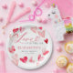 Un diseño encantador y contemporáneo que emana romance y diversión, ideal para fiestas de compromiso de cualquier temporada, y especialmente adecuado para una celebración del Día de San Valentín. Con un diseño limpio y corazones caprichosos y vibrantes en una paleta de tonos suaves de rosa, este acompañamiento de invitación, un plato de papel personalizado, captura la alegría y el calor de la ocasión. La tipografía moderna añade un toque de elegancia, equilibrando los motivos de corazón animados con un estilo elegante y minimalista. Elegante e invitante, este diseño de San Valentín establece el tono perfecto para una fiesta de compromiso llena de amor y risas.