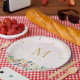 Placas de papel monograma diseñadas en personalizado con monograma de oro de estilo clásico con elegante ramo rosa de color de agua rosa.