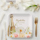 Hermoso brunch y chapas de papel cuadrado con ducha de novia burbujeantes con elegantes flores acuáticas sobre un fondo rosa pálido con detalles en letras de moda. COINCIDIENDO elementos de nuestra colección.