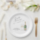 Una botella de champán de color agua elegante con dos copas de champán y un texto "Pon el champán. Ella está cambiando su nombre".