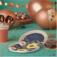 Añada elegancia rústica a su ducha nupcial con este plato de papel azul marino, con flores silvestres vibrantes, vegetación y suaves acentos de oro rosa. Este diseño floral, resaltado con el nombre y la fecha de la novia, incluye girasoles, flores rosadas y follaje, perfecto para las duchas nupciales de otoño o verano. Una encantadora elección para reuniones informales, brunches de jardín o fiestas de moda rústica.