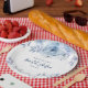 Crea platos de papel modernos para Ducha Nupcial en Azul Deslucido con esta plantilla linda que presenta un ramo floral rústico hermoso con tipografía simple moderna. CONSEJO: Las tarjetas de la suite de boda correspondientes, como confirmación de asistencia, programas de boda, pancartas, tapices, etiquetas de regalo, letreros y otros detalles y recuerdos de boda están disponibles en la colección de abajo que incluye este diseño.