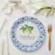 Plato De Papel Ducha nupcial moderna limón y hoja índigo Shibori