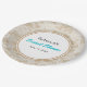 Este plato de papel de ducha de novia (desechable) presenta un fondo de burrega con un sobre de encaje blanco. El centro de la placa es blanco y cuenta con texto de personalizable para el nombre de la futura novia y su fecha de la ducha de novia.