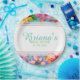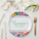 Flores de hibiscos tropicales de bonito luminosas y coloridas sobre el fondo acuático como bordes superiores e inferiores con el centro acuático y texto de personalizable verde para personalizar los detalles de la ducha de novia.
