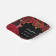 Para una dulce fiesta de 16, 16 cumpleaños. Un fondo negro con purpurina rojo falso dorado, chispas, un vestido rojo y rosas rojas, florales. El nombre está escrito con una escritura de estilo con letras a mano moderna. Personalice y agregue su nombre y una fecha.
