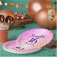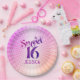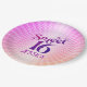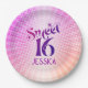 "Feliz dulce 16". Celebra su cumpleaños con este groovy boho retro, plato de papel personalizado. Tipografía divertida, moderna, audaz, rosa oscuro y rosa oscuro con la tipografía moderna sans serif sobre un fondo de naranja de luz pop y rayas de gradiente rosado oscuro con puntos blancos. Personalice el texto del personalizado con el nombre de su hija. Su elección de 2 tamaños: 7" o 9", además de opciones de cuadrado y tazón. ¡Este elegante plato de papel está garantizado para marcar el tono justo para su celebración especial! En esta interesante y única colección también hay disponibles invitaciones, servilletas, banners y otros artículos de cumpleaños. Simplemente teclee el nombre del chica de cumpleaños y puede personalizar fácilmente estas placas de papel fiesta Sweet 16. Por favor, envíame cualquier pregunta o petición.