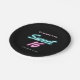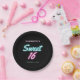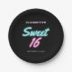 Platos de papel de la fiesta de cumpleaños 16 de Guay con "Sweet 16" escrito en escritura rosada caliente y verde azulada con un efecto de neón en el fondo negro. Personalizar con su nombre y fecha de cumpleaños.