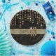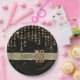 Este elegante plato de papel Sweet Sixteen presenta un gigante falso purpurina dorado '16' y una cinta sobre un fondo negro de satén adornado con un patrón de joyas colgantes. Agregue el nombre de un celebrante utilizando la plantilla proporcionada. Busque ID260 para ver otros productos con este diseño.