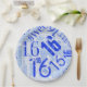 El texto "Feliz cumpleaños dulce 16" en azul con los efectos purpurinas provocadores forma este elegante diseño de placa de papel en la nube. El color de fondo es opcional y se puede cambiar si se prefiere. Busque ID265 para ver otras opciones de color y productos adicionales con este diseño.