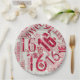 El texto "Feliz Cumpleaños dulce 16" en rojo con los efectos purpurinas que provocan el desatamiento forma este elegante diseño de placas de papel en la nube. El fondo de la clase es opcional y se puede cambiar si se prefiere. Busque ID265 para ver otras opciones de color y productos adicionales con este diseño.