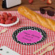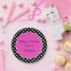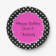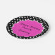 Placas del fiesta del dulce 16 del cumpleaños en modelo elegante de la putrefacción de la polca y espacio rosado del monograma del estilo de la concha de peregrino que usted puede personalizar con el descenso conocido del chica del cumpleaños. Un diseño lindo que celebrará su cumpleaños en estilo.
