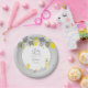 Plato De Papel Dulce lluvia de bebé amarillo gris género neutral