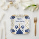 Este dulce plato de dieciséis platos tiene un marco dorado elegante, una bella princesa con el pelo rubio y un vestido azul marino, flores y un globo. Es perfecto para una dulce fiesta de 16 años.