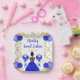 Este dulce plato de dieciséis platos tiene un marco dorado elegante, una bella princesa con piel oscura y un vestido azul real, flores y un globo. Es perfecto para una dulce fiesta de 16 años.