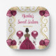 Plato De Papel Dulce y dieciséis princesa de piel oscura en rojo
