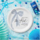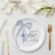 Plato De Papel Dusty Blue Bow Ella está atando el nudo Bridal Sho