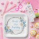Hermoso plato de fiesta de cumpleaños con un polvoriento marco purpurina azul y plata con arreglos florales. Perfecto para una dulce fiesta de 16 años. Las palabras se pueden cambiar para adaptarlas a sus propios detalles o requisitos