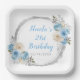 Plato De Papel Dusty Blue Silver Elegant Flowday Party