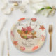El amor está preparándose para la ducha nupcial de otoño plantilla de platos de papel personalizados monogramados, calabaza de acuarela especias de canela taza de té hojas de arce, fondo marrón para decoración de mesa personalizada con nombre para ducha nupcial con tema de otoño, platos de papel personalizados.