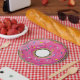 Plato De Papel El arco iris rosado asperja el buñuelo