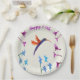 Placas de papel con un colibrí que vuela libremente entre las flores. Grande para un cumpleaños o un aniversario del jalón, el texto se modifica para requisitos particulares fácilmente para su ocasión. Estas placas florales del colibrí fueron diseñadas usando un ilustracion de mi pintura de cristal del pájaro original. alfarero del ©Annabel