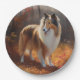 Plato De Papel El duro collie en otoño se inspira en las hojas
