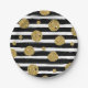 Plato De Papel El falso purpurina del oro puntea rayas blancas