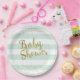 Esta fiesta de bienvenida al bebé adorablemente de moda platea rayas modernas de la verde menta y del blanco de la característica con falso confeti del efecto metalizado de oro. El texto de "Baby Shower" también se hace en un falso estilo bonito del efecto metalizado de oro. ¡Dulce perfectamente moderno y estupendo! Los amigos y la familia amarán la elegancia simple, moderna. Vea mi tienda para los artículos de coordinación (y éntreme en contacto con si usted necesita el algo más creado para coordinar!) ©2016 Weddings*n*Whimsy
