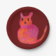 Ilustracion de acuarela rosa y naranja de un gato. Arte de gato funky diseño moderno de gatitos para amantes de gatos o damas de gatos locos.