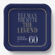 ¡Su vida ha sido una gran aventura! Estos fabulosos platos de papel cuadrado de 60 años para hombres de azul marino de 9" que dicen "El hombre el mito la leyenda" en una fuente clásica de plata y oro son perfectos para celebrar al hombre en el cumpleaños 60 de tu vida. Estos platos son modernos, de diseño, modernos y contemporáneos. Para ver sus placas únicas, seleccione "Personalizar esta plantilla" y escriba su información. ¡Es muy fácil!